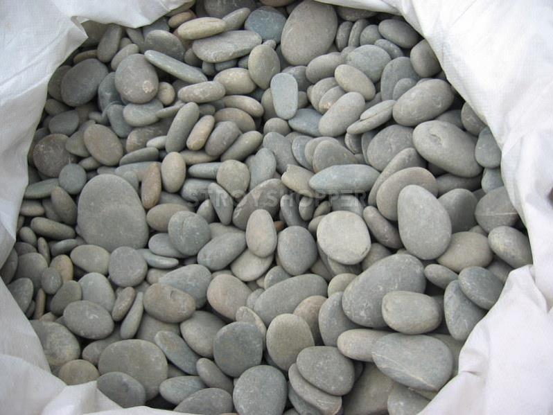 Купить «Галька речная серая 30-70мм, мешок 25кг»