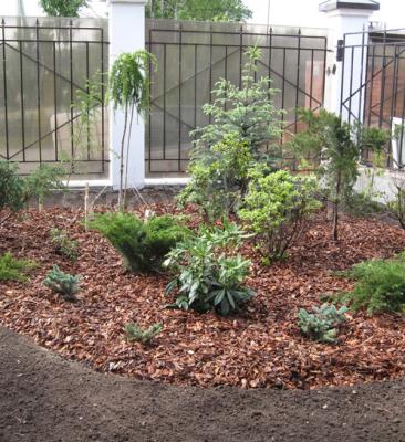 Декоративная щепа регулярно используется в ландшафтном дизайне для декорирования и мульчирования садов и участков. Сама щепа окрашена красителями на натуральной основе, которые не смываются водой и устойчивы к выгоранию на солнце. Сам цвет получается ярким и насыщенным. Средний срок службы декоративной щепы составлет приблизительно 2-3 года. После укладки на землю, со временем нижние слои щепы начинают понемногу перегнивать, улучшая состав почвы, но при этом свои декоративные свойства она сохраняет на протяжении всего срока службы. Сама же основа - это щепки хвойных пород деревьев фракции от 2 до 4 сантиметров. Чтобы добиться максимального мульчирующего эффекта и 100% отсутствия сорняков, рекомендуем вам укладывать коричневую декоративную щепу на подложку из геотекстиля или листвиничного гумуса. Оптимальная толщина укладки составляет 3-4 сантиметра. Купить цветную коричневую щепу можно в мешках объемом 60 литров, цена зависит от количества - чем больше объем, тем ниже цена. 60 литрового мешка при указанной толщине засыпки хватает на 1 квадратный метр территории.